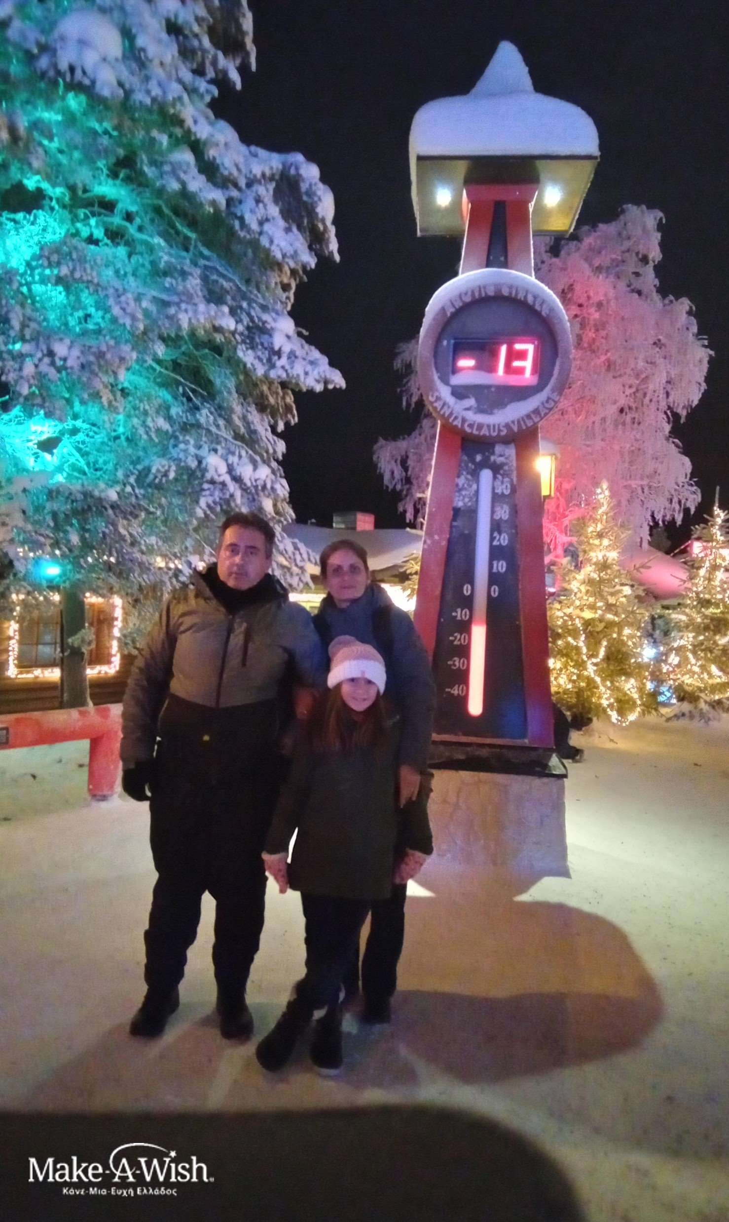 Εκστασιασμένη από όσα θα ακολουθούσαν, επιβιβάστηκε στο αεροπλάνο με προορισμό το παραμυθένιο Ροβανιέμι. Τα όσα έζησε, όμως, ξεπερνούσαν ακόμα και τα όνειρά της! Το πανέμορφο χιονισμένο τοπίο τη μάγεψε και δεν χόρταινε να παίζει στο χιόνι. Το σπίτι του Άγιου Βασίλη ήταν πολύ ωραιότερο από αυτό που φανταζόταν και τα παιχνιδιάρικα ξωτικά έδιναν ακόμα πιο χαρούμενη νότα στο σκηνικό. Ο αληθινός Άγιος Βασίλης, πράος και φιλικός, με μεγάλη αγάπη στα παιδιά, την αγκάλιασε ζεστά κι εκείνη δεν σταματούσε να χαμογελάει.
